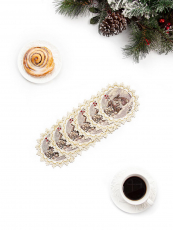 / Лесные друзья у кормушки Комплект салфеток 6шт д11 см тесьма золото